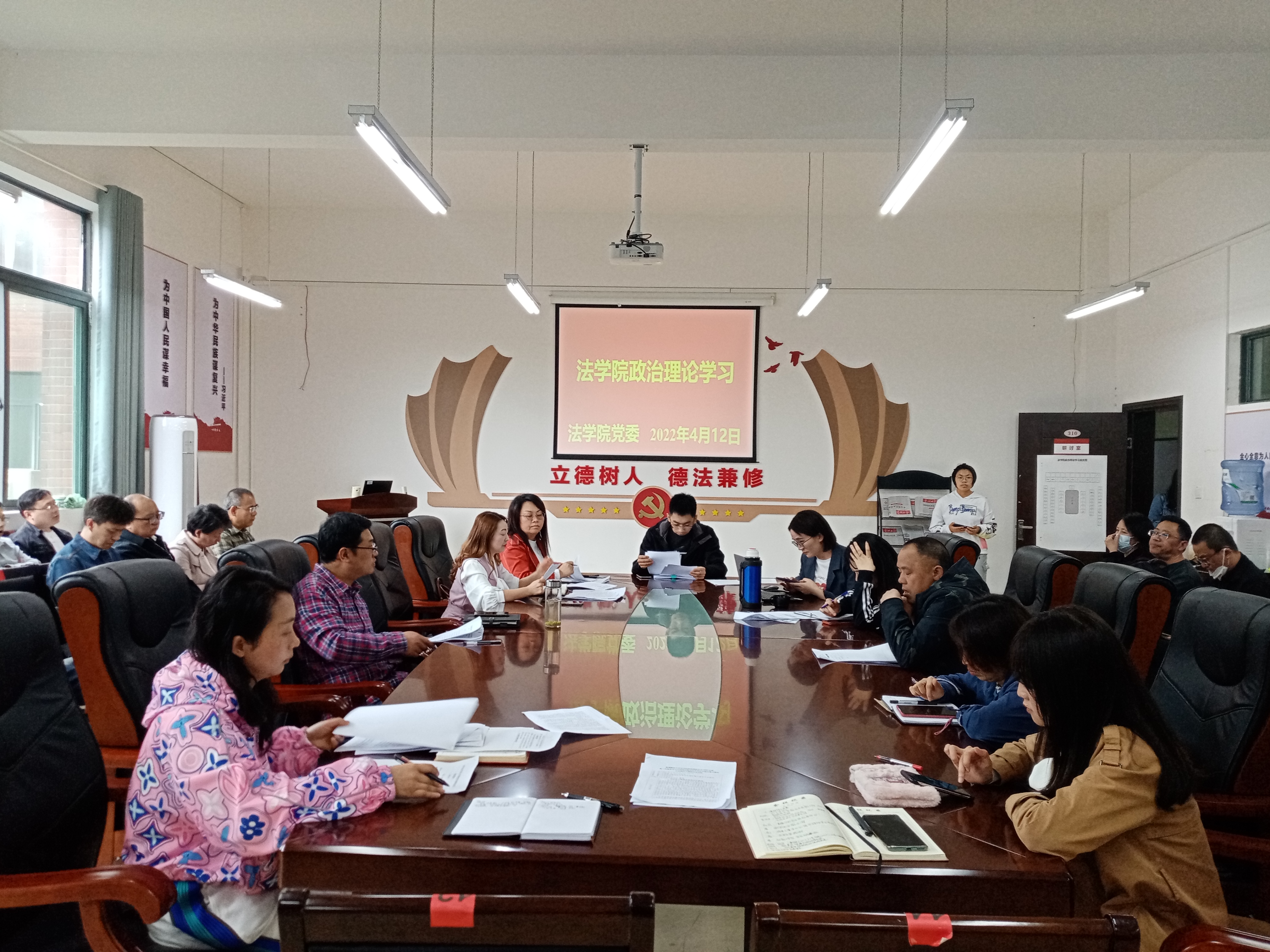 (法学院 图文/报道 徐方)2022年4月12日下午,法学院党委在文德楼A8-310会议室围绕“全国两会精神及全省安全稳定警示教育大会精神”专题组织召开第三次教职工政治理论集体学习研讨会议。院领导及全院教职工出席会议,党委书记詹伟主持会议。