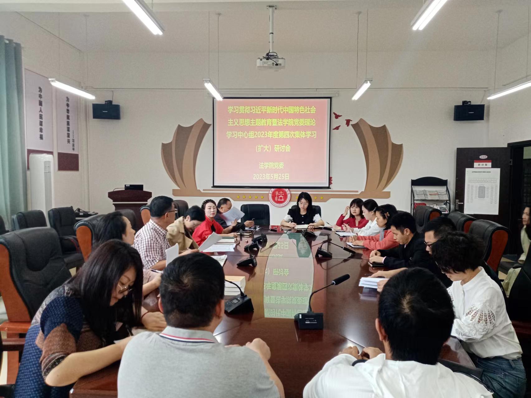 (法学院 图文/报道 徐方)2023年5月25日,法学院党委理论学习中心组在文德楼A8-310会议室召开2023年第四次集体学习暨《中国共产党章程》专题学习(扩大)研讨会。学院领导及副科级及其以上的工作人员参加会议。学院党委书记詹伟主持会议。