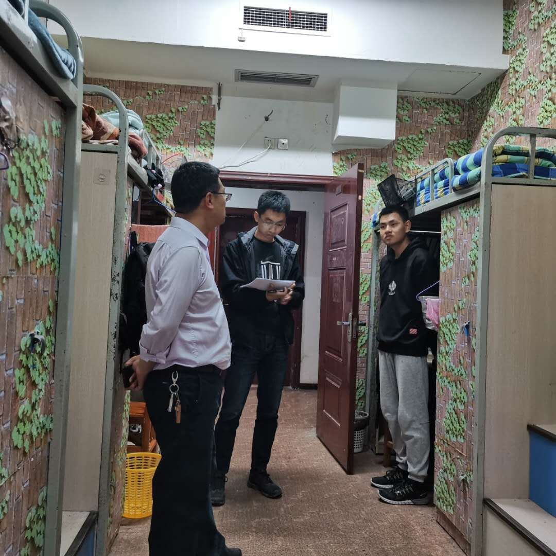 202141清明小长假前夕,法学院党委书记詹伟带领学生辅导员走访了我院学生宿舍新学期开学后学生的学习和生活状况以及小长假的安排进行了关心和询问