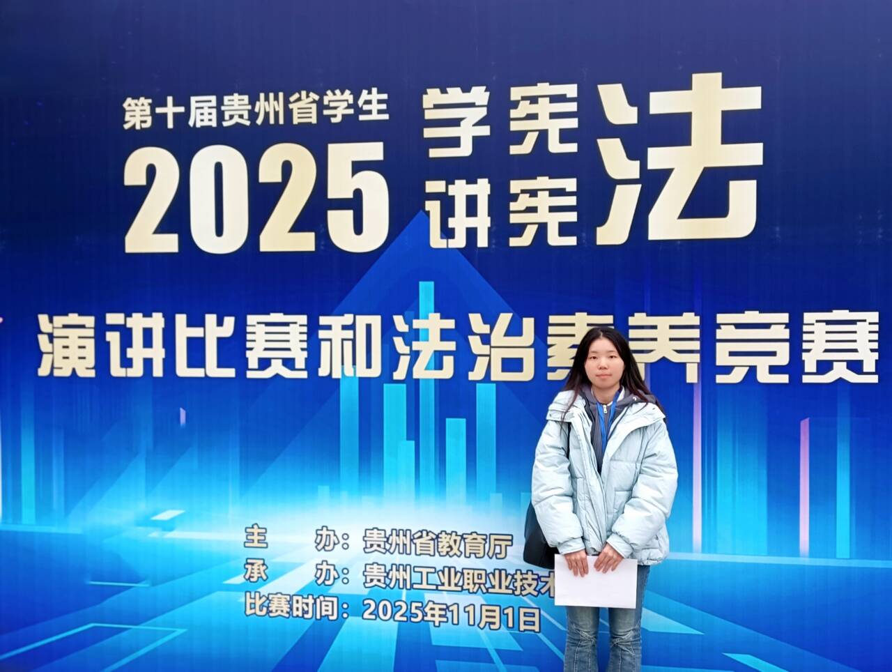 近日,贵州省第十届“学宪法讲宪法”演讲比赛和法治素养竞赛在贵州工业职业技术学院圆满落幕。来自全省各高校、中小学的数百名选手齐聚一堂,围绕宪法精神、法治理念展开激烈角逐。其中,华体会法学院张丹丹同学凭借扎实的宪法知识功底荣获法治素养竞赛一等奖,西密歇根学院焦瑞图同学凭借出色的演讲表现力以及深厚的法治素养斩获演讲比赛一等奖。